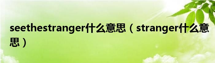 本文,seethestranger什么意思,stranger什么意思到此就分享完毕,希望对大家有所帮助。