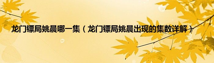 欢迎观看本篇文章,小升来为大家解答以上问题。龙门镖局姚晨哪一集,龙门镖局姚晨出现的集数详解很多人还不知道,现在让我们一起来看看吧!