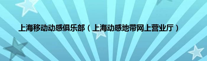 大家好,小问来为大家解答以上问题。上海移动动感俱乐部,上海动感地带网上营业厅这个很多人还不知道,现在让我们一起来看看吧!