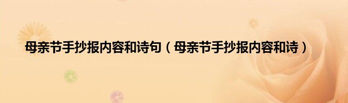 本文,母亲节手抄报内容和诗句,母亲节手抄报内容和诗到此就分享完毕,希望对大家有所帮助。