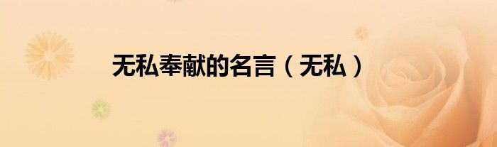 大家好,小问来为大家解答以上问题。无私奉献的名言,无私这个很多人还不知道,现在让我们一起来看看吧!