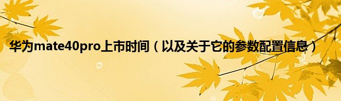本文,华为mate40pro上市时间,以及关于它的参数配置信息到此就分享完毕,希望对大家有所帮助。