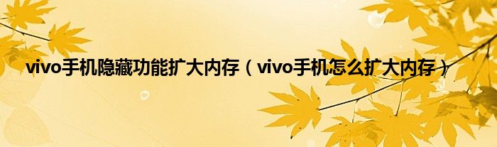 本文,vivo手机隐藏功能扩大内存,vivo手机怎么扩大内存到此就分享完毕,希望对大家有所帮助。