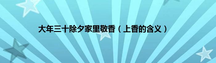 大家好,综合小编来为大家讲解下。大年三十除夕家里敬香,上香的含义这个很多人还不知道,现在让我们一起来看看吧!