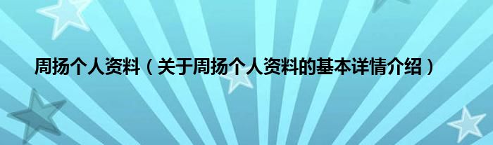 本文关于周扬个人资料的基本详情介绍就讲解完毕,希望对大家有所帮助。