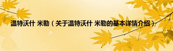 大家好我是小蝌蚪,温特沃什 米勒,关于温特沃什 米勒的基本详情介绍很多人还不知道,那么现在让我们一起来看看吧!