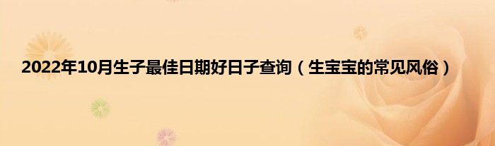 本文2022年10月生子最佳日期好日子查询,生宝宝的常见风俗到此分享完毕,希望对大家有所帮助。