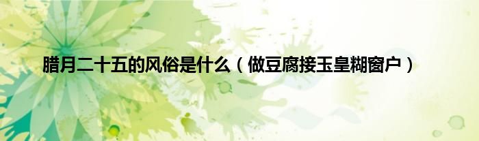 大家好,综合小编来为大家讲解下。腊月二十五的风俗是什么,做豆腐接玉皇糊窗户这个很多人还不知道,现在让我们一起来看看吧!