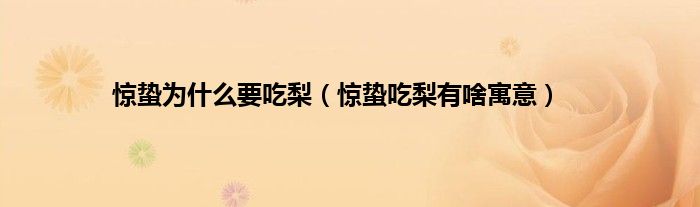 大家好,综合小编来为大家讲解下。惊蛰为什么要吃梨,惊蛰吃梨有啥寓意这个很多人还不知道,现在让我们一起来看看吧!
