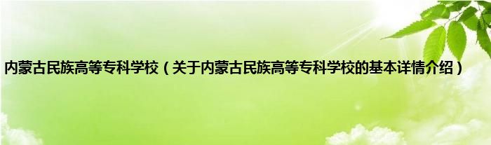 本文关于内蒙古民族高等专科学校的基本详情介绍就讲解完毕,希望对大家有所帮助。