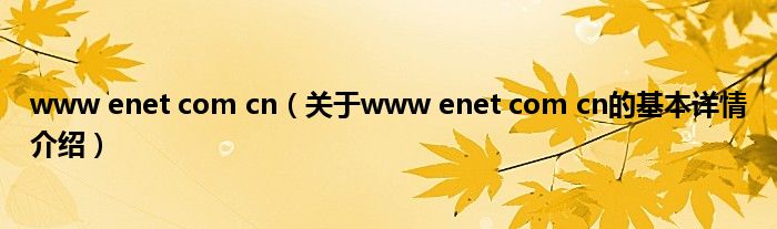 www enet com cn(关于www enet com cn的基本详情介绍)