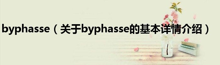 大家好我是小蝌蚪,byphasse,关于byphasse的基本详情介绍很多人还不知道,那么现在让我们一起来看看吧!