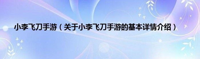 本文关于小李飞刀手游的基本详情介绍就讲解完毕,希望对大家有所帮助。