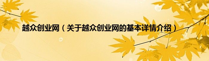 本文关于越众创业网的基本详情介绍就讲解完毕,希望对大家有所帮助。