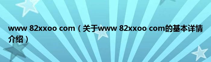 www 82xxoo com(关于www 82xxoo com的基本详情介绍)