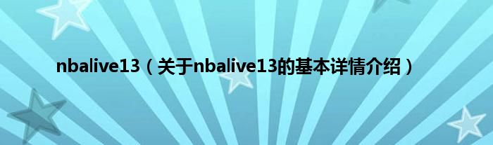 本文关于nbalive13的基本详情介绍就讲解完毕,希望对大家有所帮助。