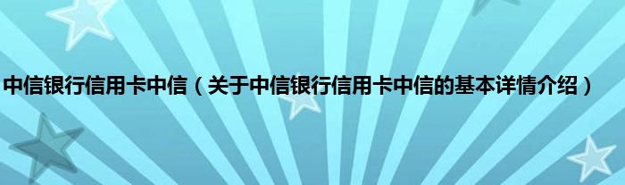 中信银行信用卡中信(关于中信银行信用卡中信的基本详情介绍)
