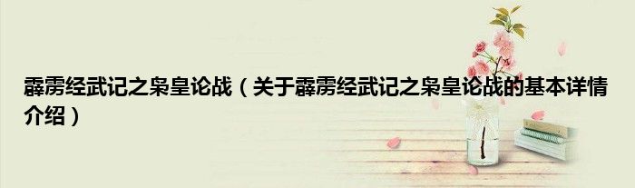 本文关于霹雳经武记之枭皇论战的基本详情介绍就讲解完毕,希望对大家有所帮助。
