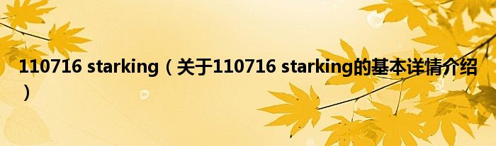 本文关于110716 starking的基本详情介绍就讲解完毕,希望对大家有所帮助。