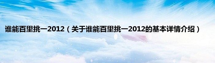 本文关于谁能百里挑一2012的基本详情介绍就讲解完毕,希望对大家有所帮助。