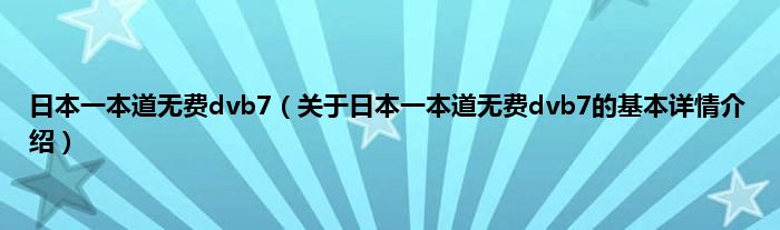 日本一本道无费dvb7(关于日本一本道无费dvb7的基本详情介绍)