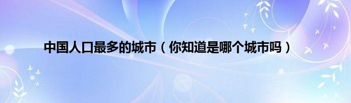 欢迎观看本篇文章,小升来为大家解答以上问题。中国人口最多的城市,你知道是哪个城市吗很多人还不知道,现在让我们一起来看看吧!
