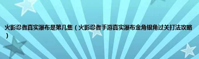 大家好,综合小编来为大家讲解下火影忍者真实瀑布是第几集,火影忍者手游真实瀑布金角银角过关打法攻略这个很多人还不知道,现在让我们一起来看看吧!