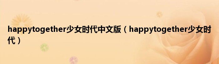 大家好,小问来为大家解答以上问题。happytogether少女时代中文版,happytogether少女时代这个很多人还不知道,现在让我们一起来看看吧!