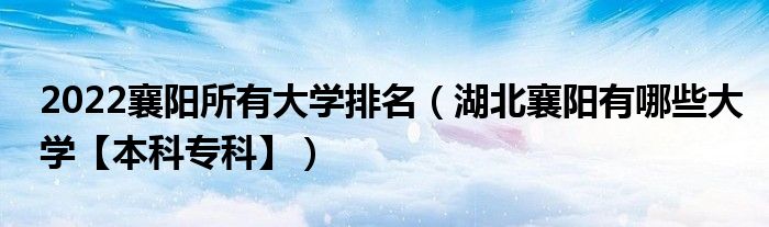 2022襄阳所有大学排名(湖北襄阳有哪些大学【本科专科】)