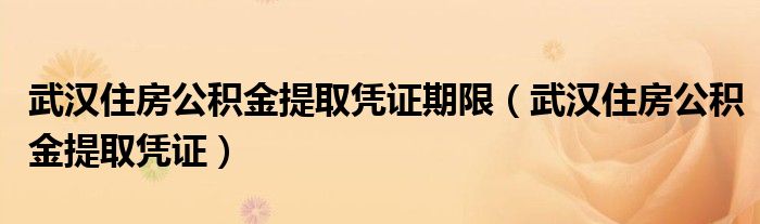 武汉住房公积金提取凭证期限(武汉住房公积金提取凭证)