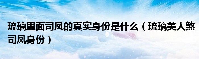 琉璃里面司凤的真实身份是什么(琉璃美人煞司凤身份)