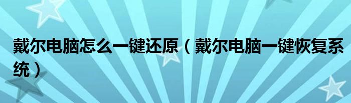 戴尔电脑怎么一键还原(戴尔电脑一键恢复系统)