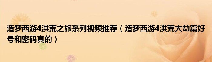 关于造梦西游4洪荒之旅系列视频推荐,造梦西游4洪荒大劫篇好号和密码真的这个很多人还不知道,今天菲菲来为大家解答以上的问题,现在让我们一起来看看吧!