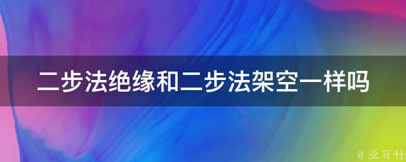 二步法绝缘和二步法架空不一样。虽然二步法绝缘和二步法架空都涉及到安全性设计和电路的操作,但它们的应用领域和概念是不同的。前者主要涉及电器设备的绝缘保护,后者则是电力系统中的电路操作规范。二步法绝缘也称为双重绝缘,是电器和电子设备的一种安全设计原理。它指的是采用两层绝缘材料来保护设备,使得设备内部易短路的金属部分无法接触外部导电物体,从而提高了设备的安全性能。二步法绝缘的概念主要应用于电器产品,如电视机、冰箱、空调等家用电器。二步法架空是一种电气安全标准,主要应用于电力系统和电路。它指的是在电路中使用两个独立的电极或导线,通过断开两个极性的电源以切断电路,以提供更高的安全性和可靠性。二步法架空的原理在电力系统和电路的设计和安装中被广泛采用,以确保电气设备的安全操作和人身安全。