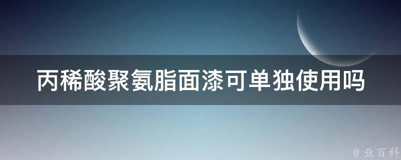 丙稀酸聚氨脂面漆不可单独使用。丙稀酸聚氨脂面漆通常是作为一种涂料体系中的组成部分而存在的,而不是单独使用的。丙稀酸聚氨脂面漆需要与其他底漆、底涂或涂料配套使用,以获得最佳的性能和效果。这是因为丙稀酸聚氨脂面漆的特性和性能在保护、装饰和耐久性方面会受到其他涂层的影响。