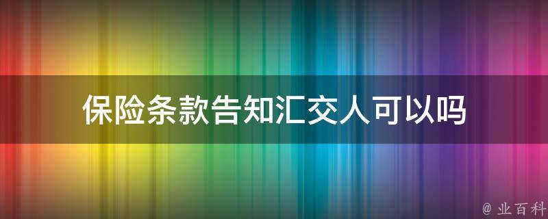 保险条款告知汇交人可以吗