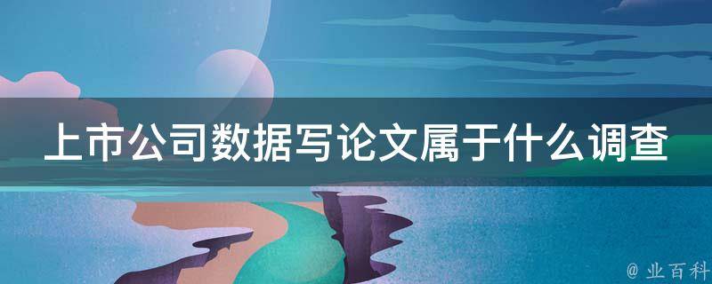 写论文中涉及上市公司数据的调查可以归类为实证研究。实证研究是通过收集和分析实际的数据来验证假设或回答研究问题。在这种情况下,需要收集上市公司的相关数据,并使用统计方法和分析技术对这些数据进行处理和解释,以回答研究问题或验证您的假设。实证研究通常使用定量数据,通过数理统计方法来分析和解释数据。这种研究方法强调客观性和量化分析,并依靠观察到的现象和数据,而不是主观的意见或理论推断。