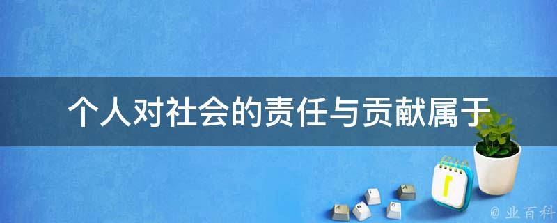 个人对社会的责任与贡献属于社会价值。人生的社会价值是人生价值的最重要方面,因为没有贡献,社会就不能存在和发展,索取也是不可能的,但是如果没有人的自我价值,没有索取,没有物质生活和精神生活需要的满足,人也不可能做出贡献。