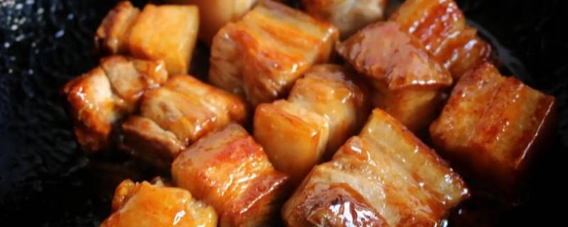 2、锅中不用放油,烧热后,肉皮朝下放入锅中,来回滑动块肉,将肉皮烤焦后取出;