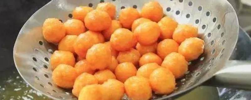 小奶锅,加入适量的花生油,放入红薯糯米小丸子。