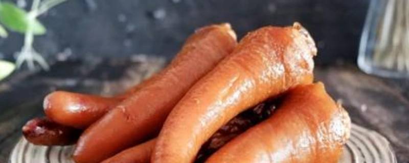 3、立刻将猪尾入锅中,小火煸炒,使表面挂上糖色。