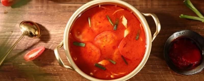 煲好的汤倒入到火锅的锅,将番茄味火锅汤底全部倒入到锅里,然后用勺子搅散。