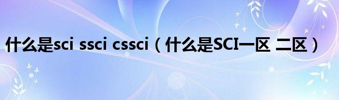 什么是sci ssci cssci(什么是SCI一区 二区)