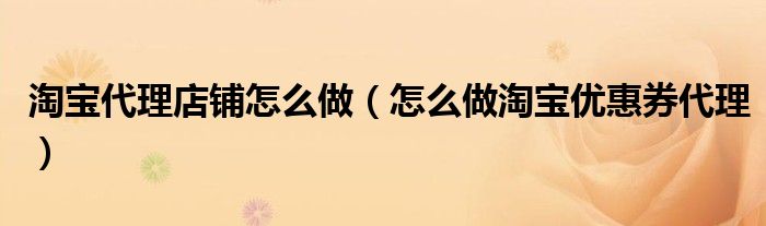关于淘宝代理店铺怎么做,怎么做淘宝优惠券代理这个很多人还不知道,今天菲菲来为大家解答以上的问题,现在让我们一起来看看吧!