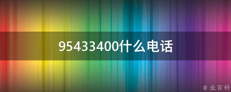 最佳答案95433400是客户服务短号码、电信业务接入号码等,95开头的号码从号段发放的初始源头来看,应该是经过审批、发放给具有一定资质许可的增值服务提供商来使用。但实际上也不排除个别增值服务商拿到相关号段后,将其中部分资源转授与其他相关企业使用,这些企业可以在原本的比如6位号码后续加尾号,比如...