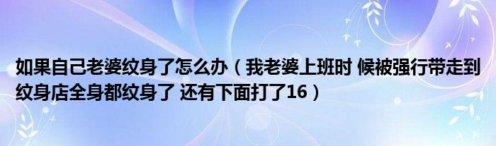 关于如果自己老婆纹身了怎么办,我老婆上班时 候被强行带走到纹身店全身都纹身了 还有下面打了16这个很多人还不知道,今天菲菲来为大家解答以上的问题,现在让我们一起来看看吧!