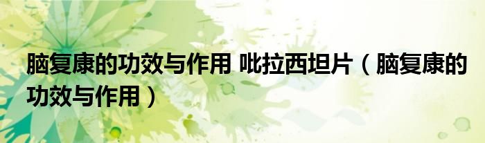 关于脑复康的功效与作用 吡拉西坦片,脑复康的功效与作用这个很多人还不知道,今天菲菲来为大家解答以上的问题,现在让我们一起来看看吧!