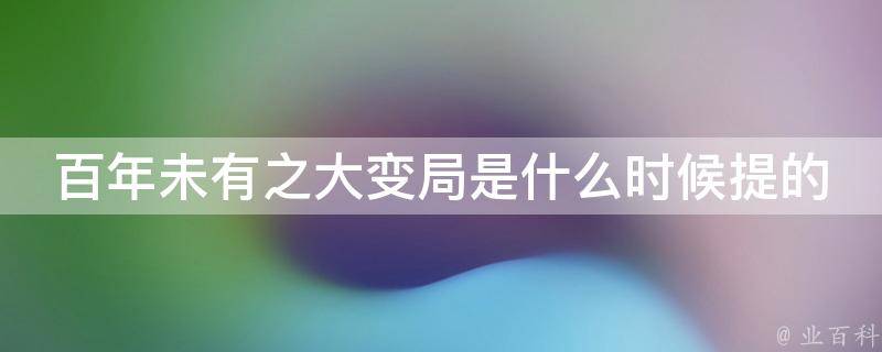 最佳答案百年未有之大变局是2017年12月提的。2017年岁末,习近平总书记在接见驻外使节工作会议上发表讲话,提出:中国特色社会主义进入了新时代。做好新时代外交工作,首先要深刻领会党的十九大精神,正确认识当今时代潮流和国际大势。放眼世界,我们面对的是百年未有之大变局。