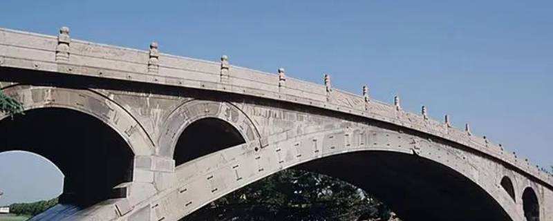 赵州桥上刻着的龙的姿态有:两条龙互相缠绕,龙头呈V字型,并且嘴里吐着水花;两条龙的龙尾缠绕,两头相对含花;两条龙的龙头相碰,呈八字型,嘴里吐着水花。赵州桥蟠龙栏板浮雕位于赵州桥两边的栏板和望柱上,雕刻有各种蛟龙、兽面、竹节、花饰等。