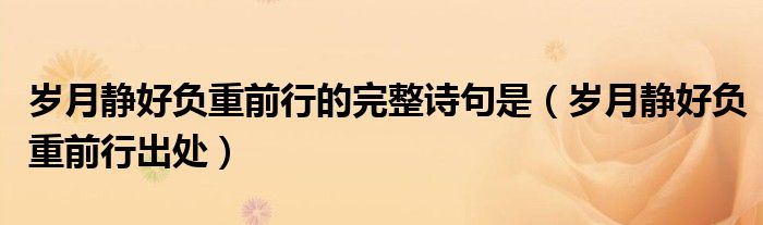 关于岁月静好负重前行的完整诗句是,岁月静好负重前行出处这个很多人还不知道,今天菲菲来为大家解答以上的问题,现在让我们一起来看看吧!